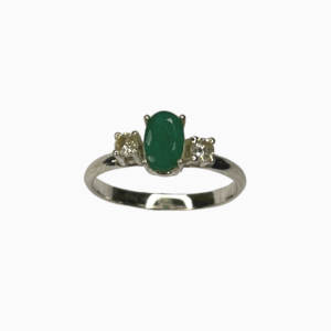 Nuestro anillo de compromiso está compuesto por una piedra preciosa central -zafiro, esmeralda o rubí- de 6 x 4 mm. Es una elección original y con mucha personalidad.